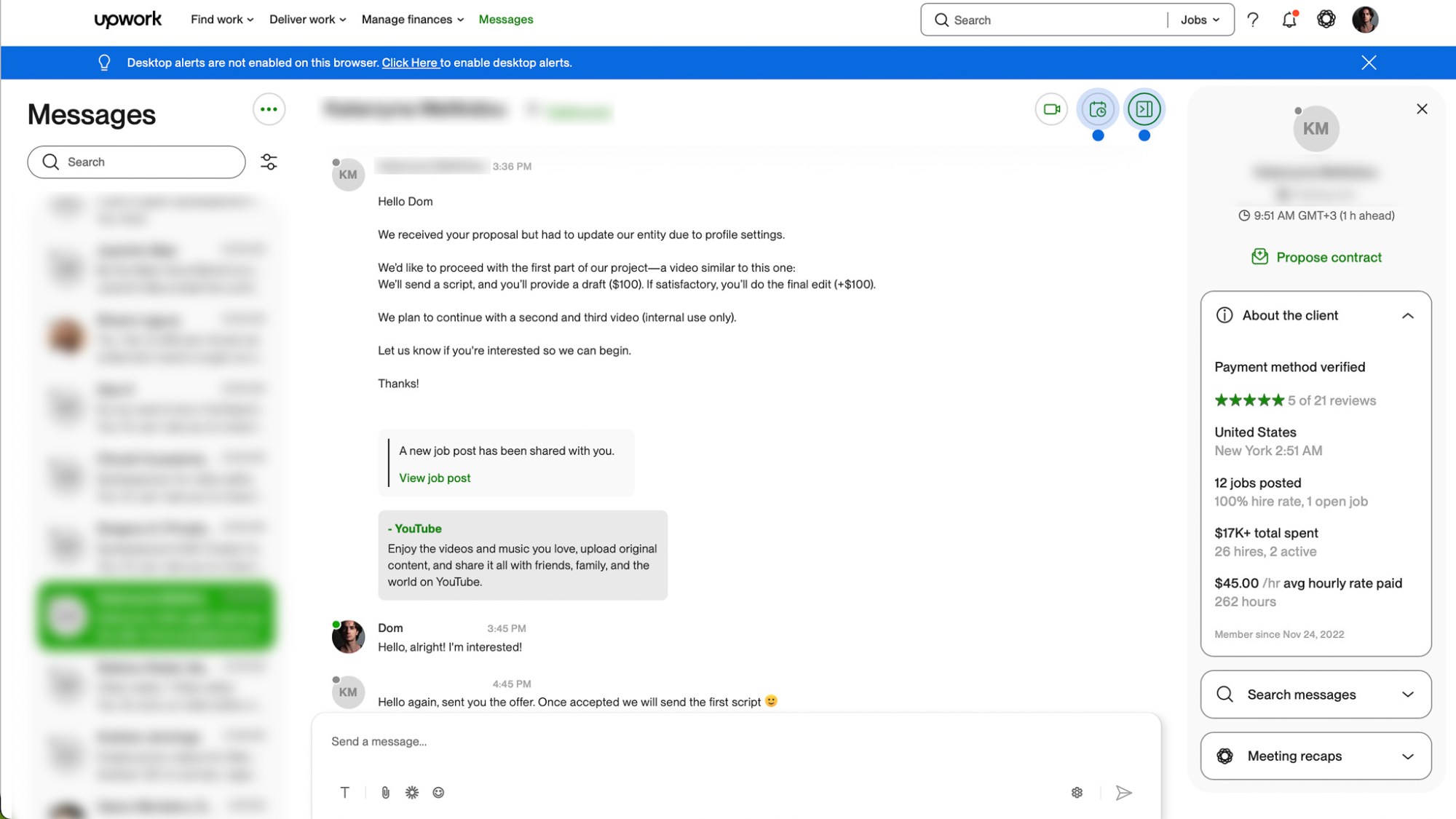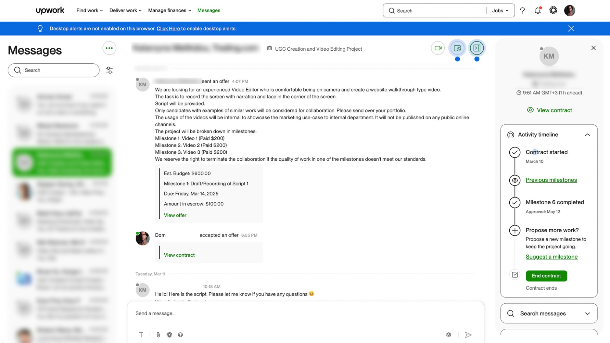 Also, in my experience, Fiverr is riskier. When I updated my gig recently, I got tons of “inquiries” that turned out to be scams—people trying to get my personal info.