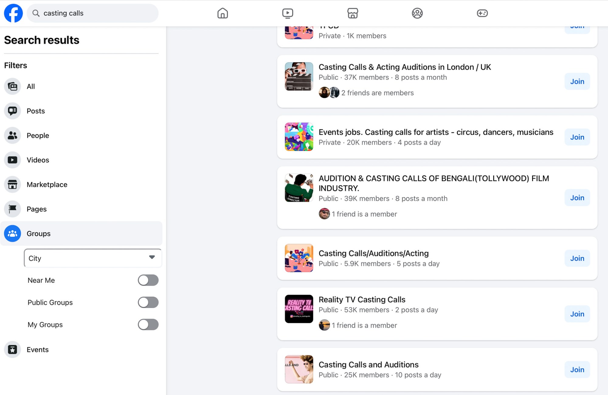 - ✅ Facebook groups – great for local casting calls and UGC gigs