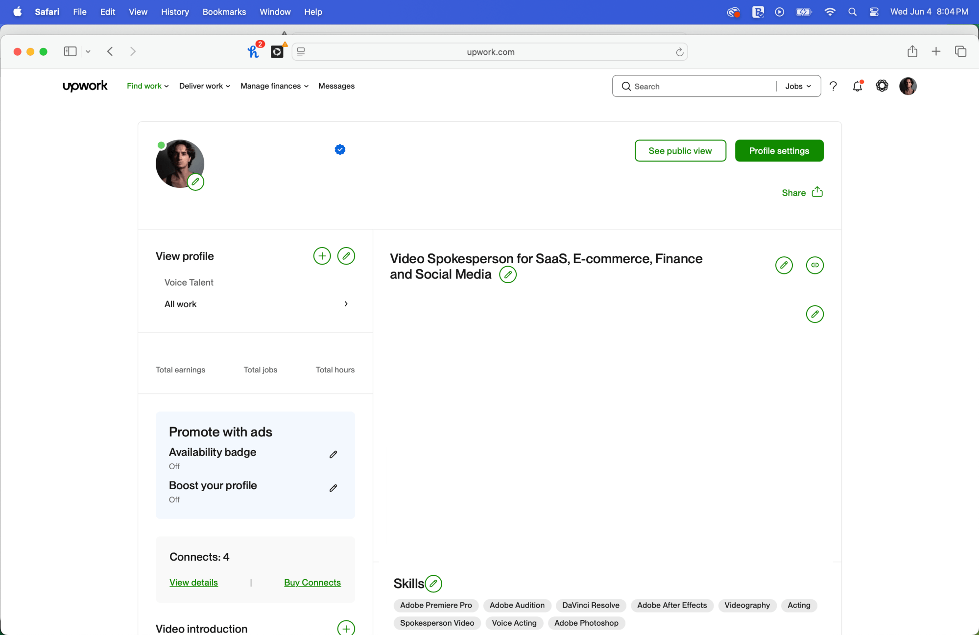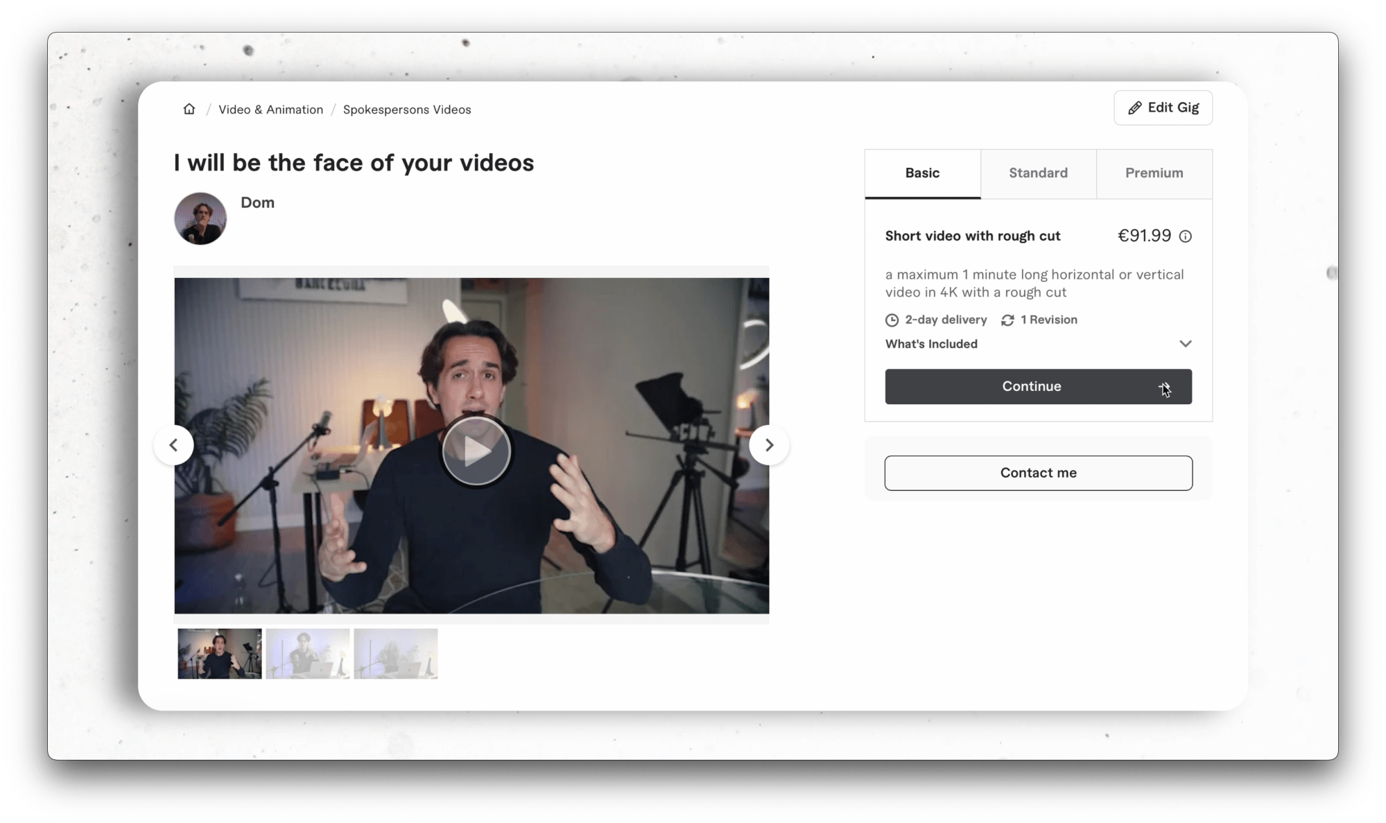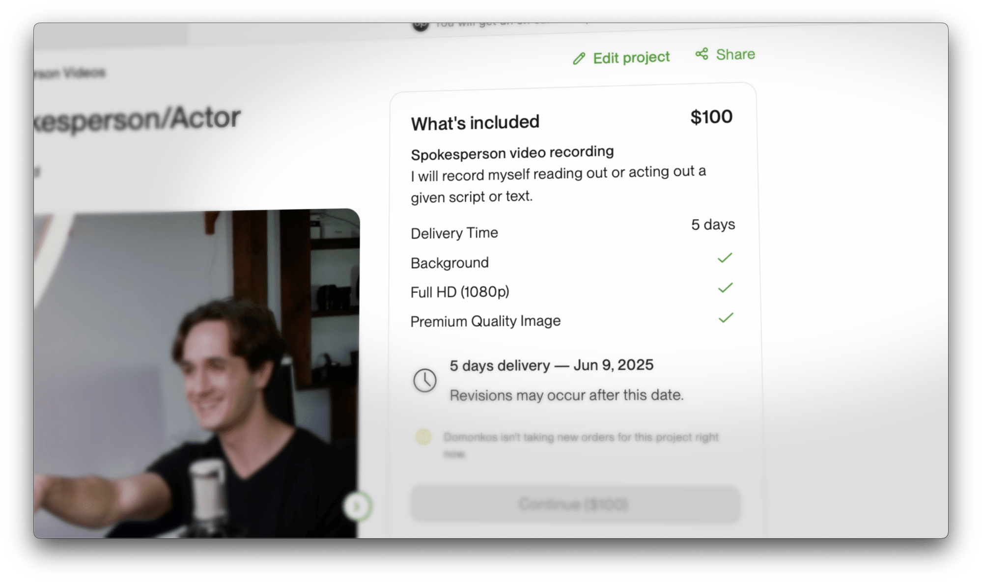 Upwork also lets you set up pre-defined gigs or service packages—e.g., a $100 UGC video offer. Clients can purchase this directly without a long conversation.