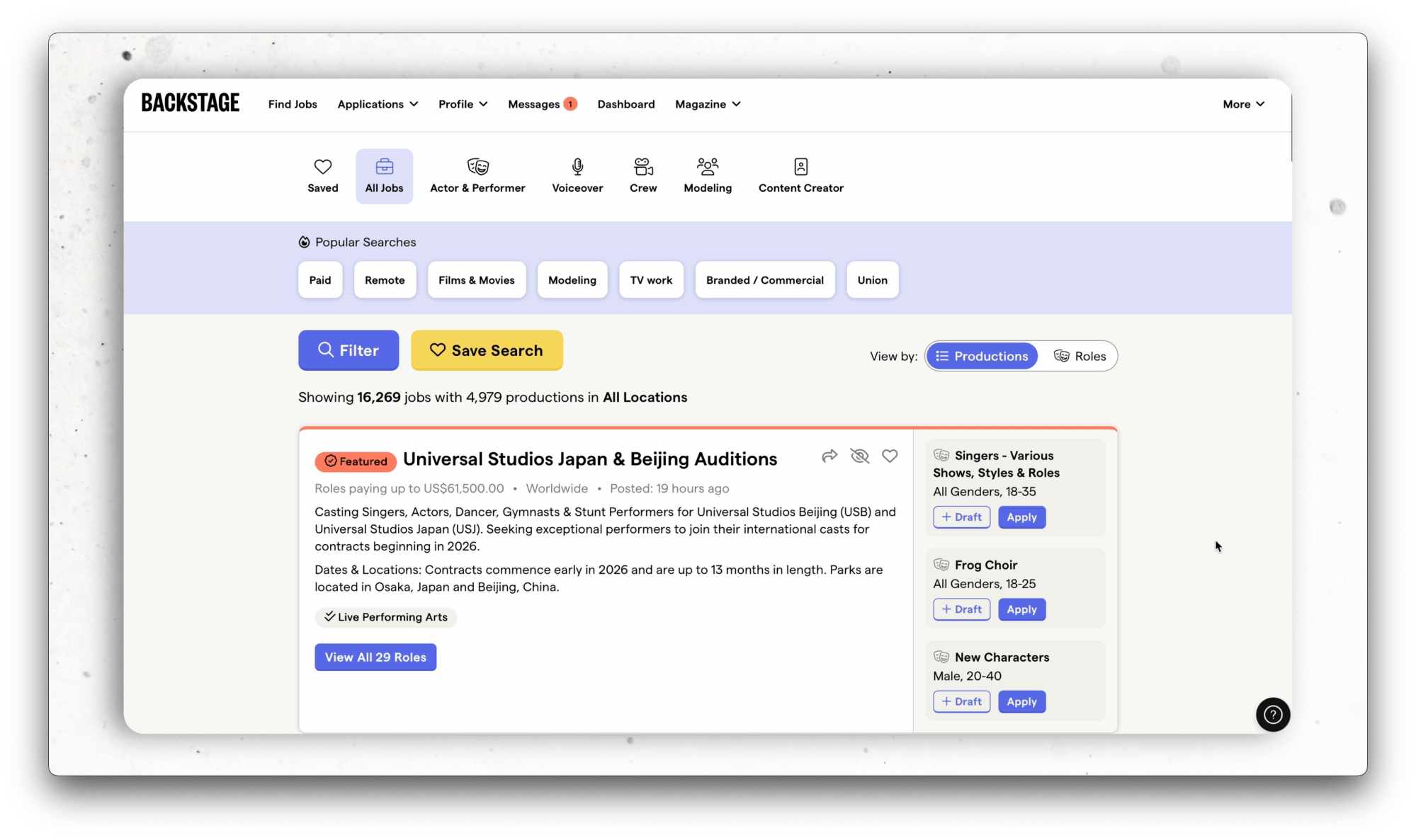 It’s legit, but often more location-specific. Some posts require you to be in the US, or in a certain city. I’ve never booked a UGC job through Backstage—but it’s worth checking out.