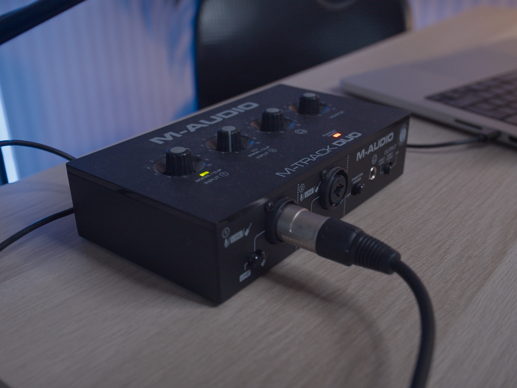 - Microphone: Clear, professional audio makes a difference. For most of my work I use an AudioTechnika 2020 XLR studio microphone with an M-Audio M-Track Duo audio interface.