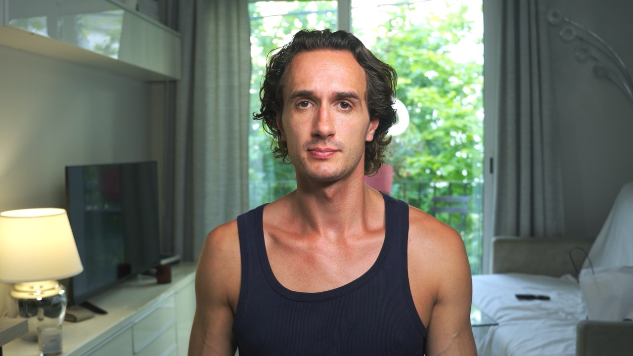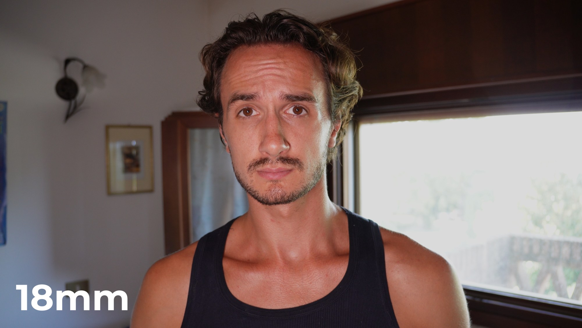 Using a wide focal length and being close to the camera will open up the space behind you, creating more depth. It’s a good hack to make a small room look more spacious. Of course, using a wide focal length can be a necessity as well since you might not be able to move the camera far enough from you. That said it’s good if you use these intentionally.